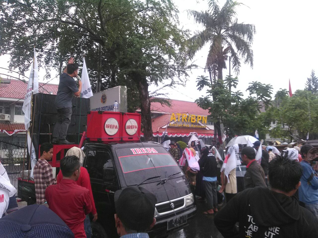 "Oknum pegawai BPN yang menjadi antek perusahaan, harus angkat kaki dari Karawang, dia kasak-kusuk ke desa dengan pihak APL, melakukan intimidasi dan membuat petani resah," katanya.